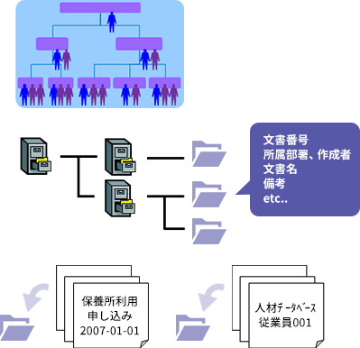 ファイルサーバから移行する場合は、ファイルサーバのフォルダ階層とファイルをそのまま楽々Document Plusへ移行できます。