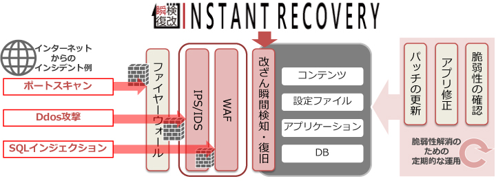 Instant Recoveryの役割は、Webサイトの防御を突破され、改ざんの被害に遭遇した際に、瞬時に検知してウェブサイトを元の状態に戻すこと。いわば、ウェブセキュリティの「最後の砦」です。
