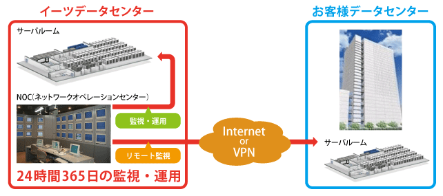 お客さまのファシリティや他のデータセンターにあるシステム機器に対しても、イーツのマネージドサービスをご提供します。