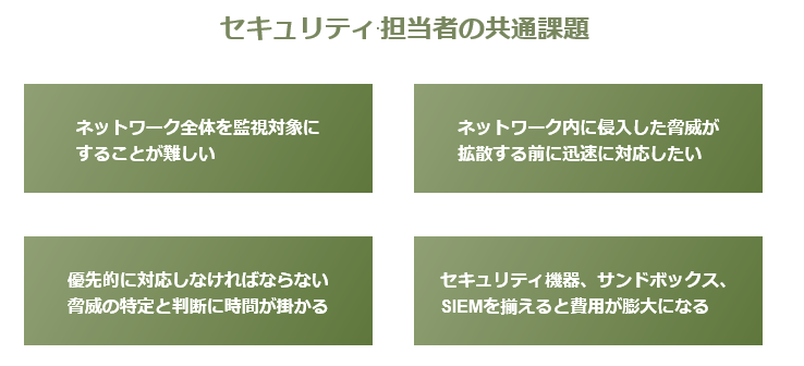 既存の対策では毎日のように通知されるアラートにより、本当に対処すべきセキュリティ脅威が必ずしも明確ではありません。無視されたアラートが解決されないまま放置されるケースが発生する事もあります。情報システム部門やセキュリティ担当者にはすべてのアラートに対応する時間はなく、緊急性の高い脅威だけを通知してほしいと考えています。