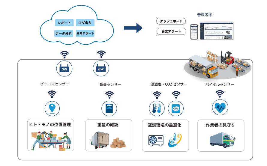 作業環境のどこに人がいるか?またはどこに物があるか?位置情報を遠隔から確認し、作業効率化が実現できます。