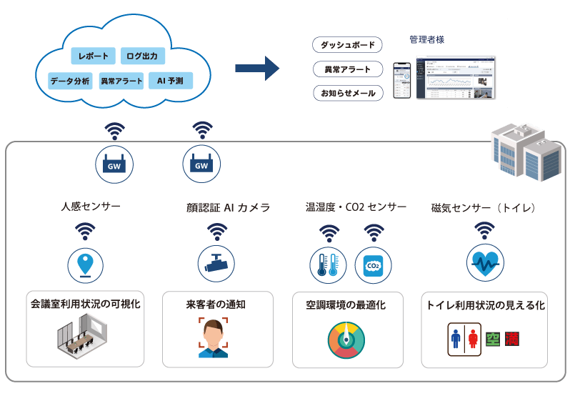 オフィスの環境の最適化を図り、かつ、会議室の満空を把握することで快適な業務遂行が実現できます。