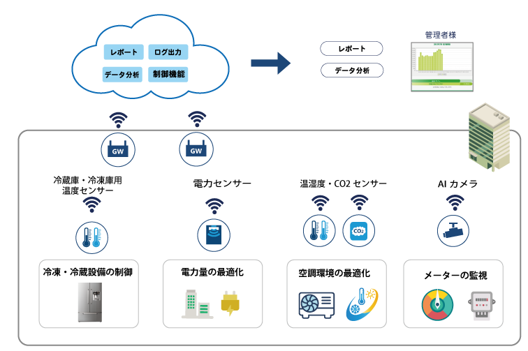 建物のエネルギー使用状況をリアルタイムで可視化し、設備を自動制御することで、エネルギー消費量を削減。