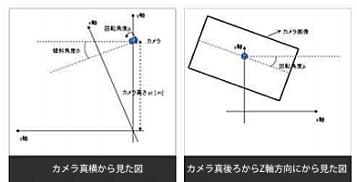 設置時のカメラパラメータは、カメラ高さ、傾斜角度、回転角度、レンズ画角があります。