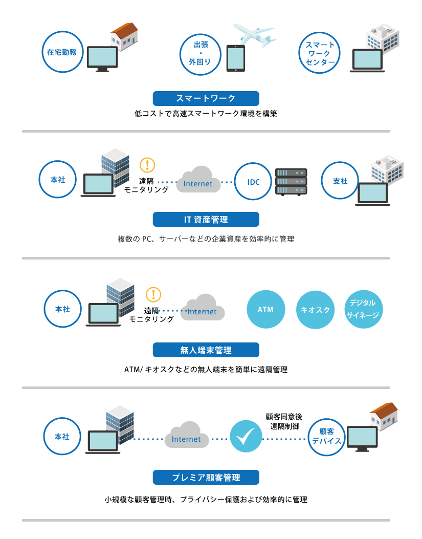 企業様向け遠隔制御ツール、管理機能で効率を向上いたします。