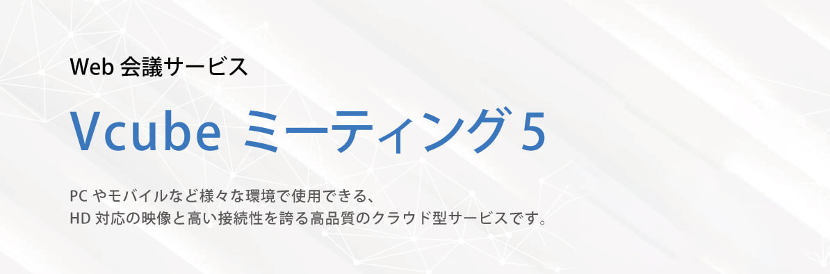 Web会議(ウェブ会議)「V-CUBE ミーティング5」は、PCやモバイルなど様々な環境で使用できる、HD対応の映像と高い接続性を誇る高品質のクラウド型サービスです。インターネットにつながる環境であれば、場所に縛られず必要な時に会議を開催できるの、コストを削減しつつ企業の業績アップを生み出す意思決定の迅速化に貢献します。