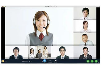 多人数がお互いに表情を確認しながら会議を進行できるので、国内外の多数の拠点から参加者が一同に介する会議開催も可能です。