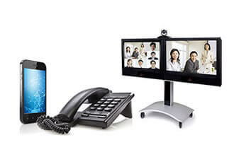 テレビ会議システムだけでなく、固定電話、携帯電話とも接続できますので、テレビ会議システムやインターネット環境が無い拠点とも会議が可能です。