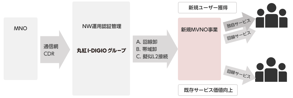 といった、ユーザーに既に何らかのサービスを提供している場合の、既存サービスの価値向上や、回線サービスと既存サービスを組み合わせることでの新規顧客開拓を検討されている場合に最適です。