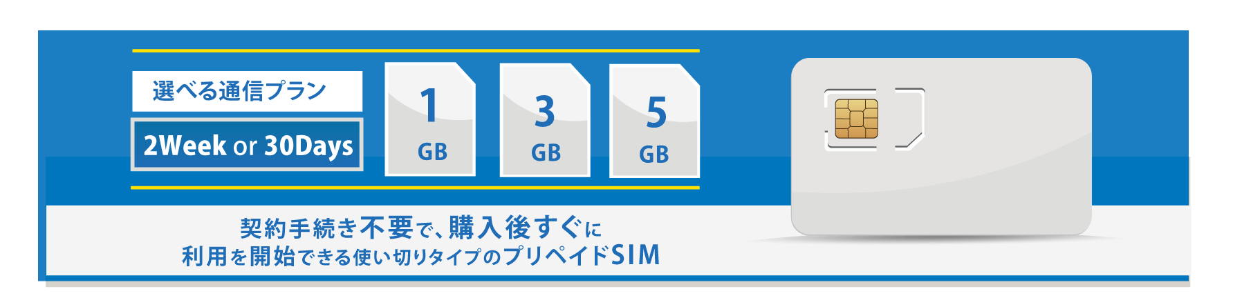 プリペイドSIMサービスとは、契約手続き不要で、購入後すぐに 利用を開始できる使い切りタイプのプリペイドSIMサービスです。