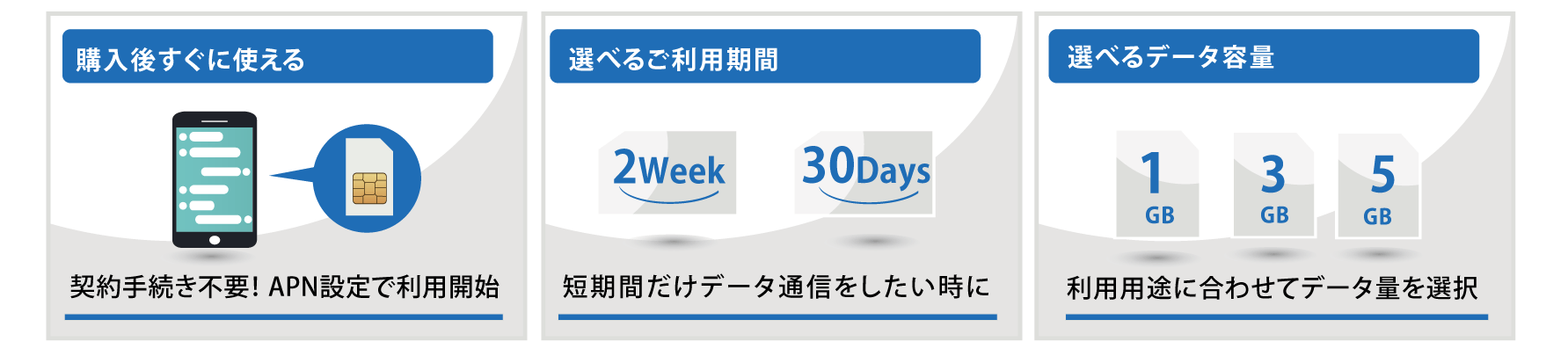 • データSIM ※データ通信専用(通話なし)、SMSなし ※3G通信専用の端末で、データ通信を行うことはできません。