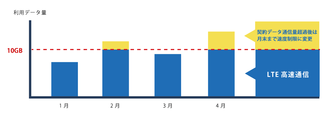 ※契約データ通信量を月内で超過した場合は、月末まで速度制限がかかります。