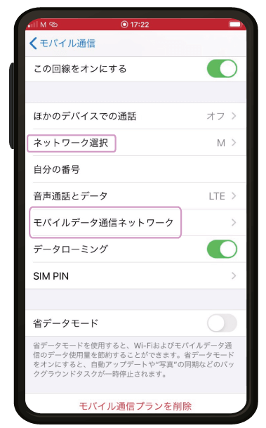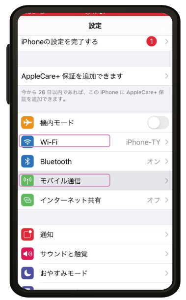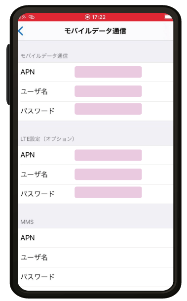 ※弊社より配布の「APN情報」、「QRコード」をご用意願います。