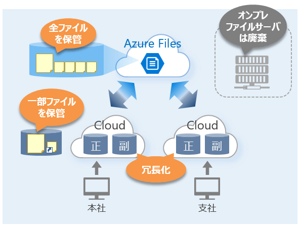 Azure File Syncは既存(オンプレミス)のファイル サーバーの柔軟性、パフォーマンス、互換性を維持したまま組織のファイル共有の一元化を実現いたします。オンプレミス環境の利便性を損なうことなく容易に法人向けクラウドストレージサービスをご利用いただけます。