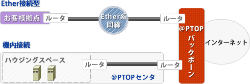 | Ether型接続サービス | 上り下り合計 1Mbps~の帯域をご利用いただけます。 |