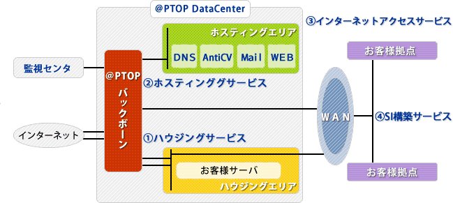 | Webホスティングサービス | @PTOPが保有するサーバにて、お客様のWebを運用します。 |