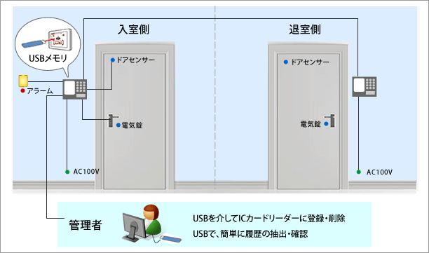 一扉から設置が可能です。機器内で照合、認証、記録を行います。