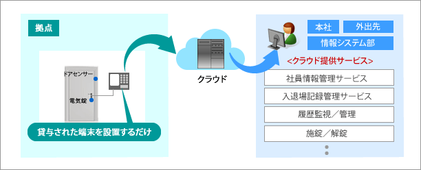 クラウド上の入退管理システムを使用するため、お客様はシステムと機器の所有が不要となり、クラウド利用料のみでご利用いただけます。