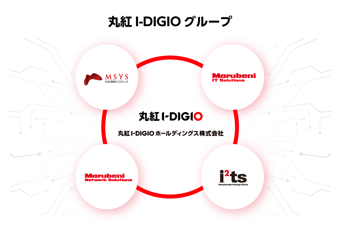 丸紅I-DIGIO(アイデジオ)グループは、丸紅I-DIGIOホールディングスを中核として、丸紅のICT領域各事業会社4社(丸紅情報システムズ、丸紅ITソリューションズ、丸紅ネットワークソリューションズ、イーツ)の持株会社として2023年4月に設立しました。