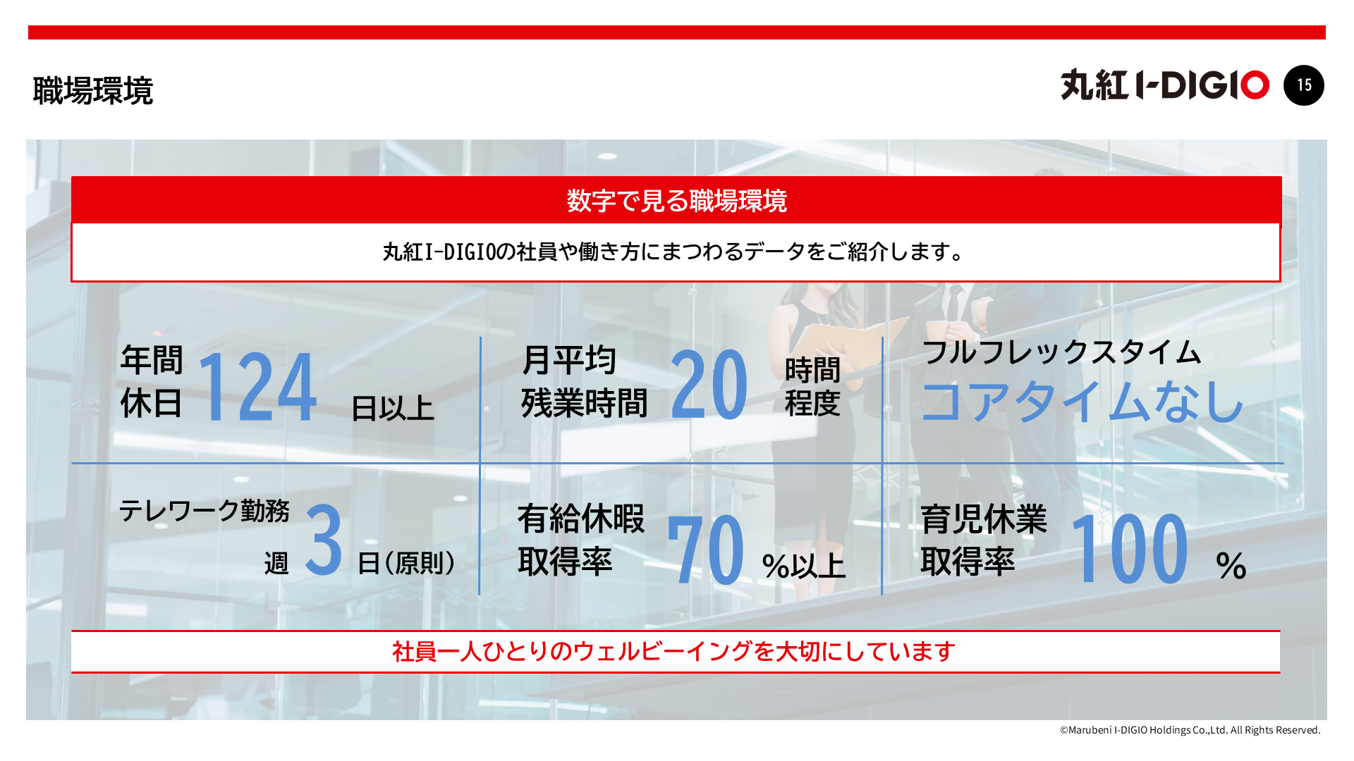 メリハリをつけて働ける環境が、社員一人ひとりの最高のパフォーマンスを支えています。