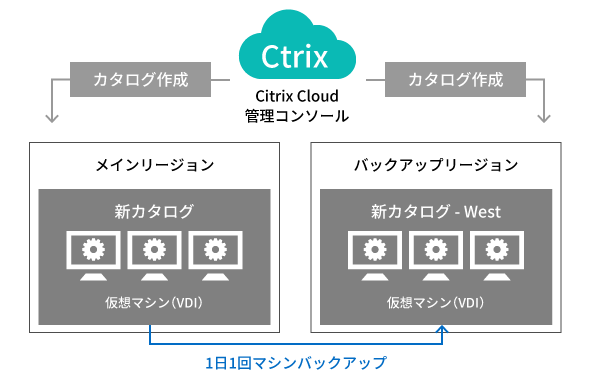 VDI環境をお客様任意のリージョンにバックアップ、DRのための仮想マシンを自動構成。罹災時にも待ち時間ゼロ。